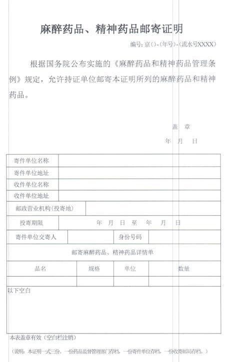 麻醉药品和精神药品邮寄运输证 麻醉药品和精神药品邮寄运输证明