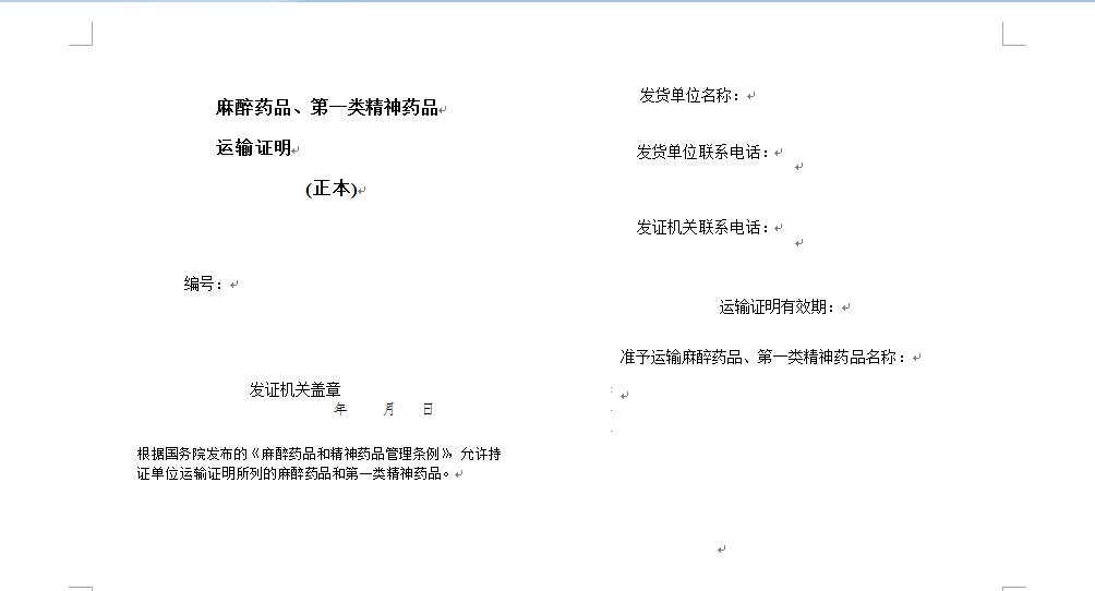 麻醉药品和第一类精神药品运输 麻醉药品和第一类精神药品运输证明
